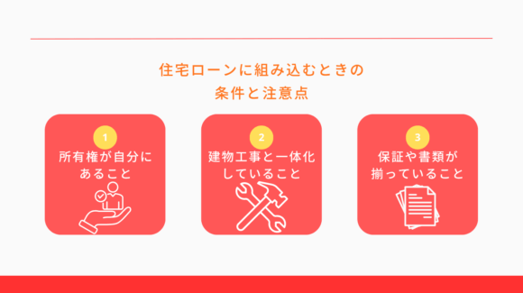 住宅ローンに太陽光と蓄電池を組み込むには、いくつかの条件があります。
