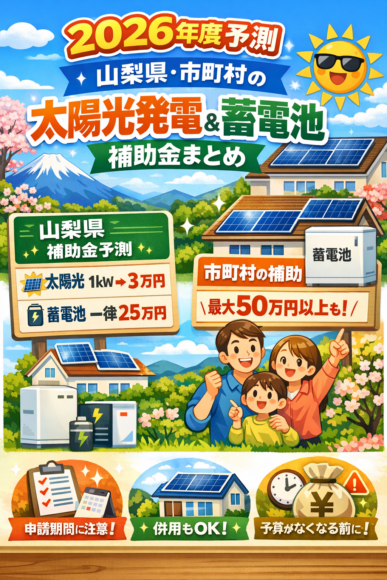 【2026年度(令和8年度)予測】山梨県・市町村の太陽光発電&蓄電池補助金まとめ