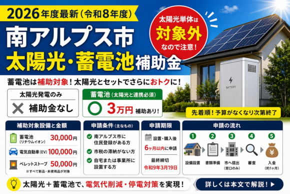 【2026年度最新(令和8年度)南アルプス市 太陽光・蓄電池補助金】