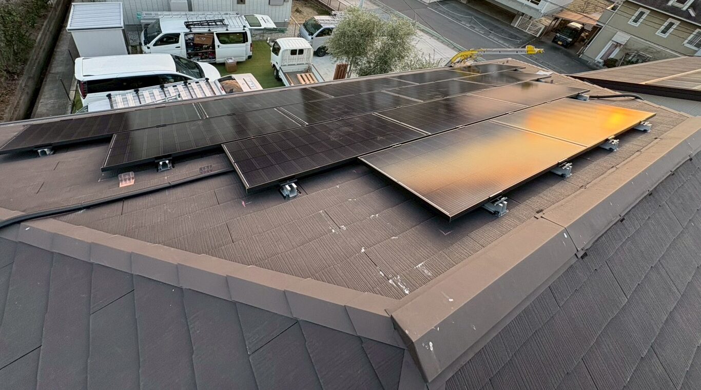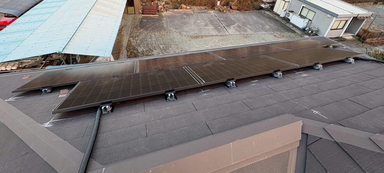 写真からも分かるように、屋根の勾配に沿って整然とパネルを設置し、見た目のバランスと発電効率の両立を意識した施工を行いました。