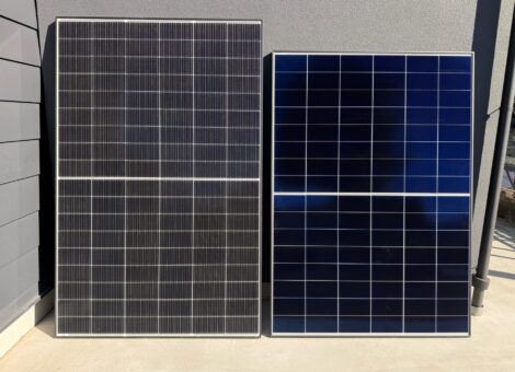 実際の屋外設置環境で並べて見ることで、パネル表面の質感や色味、反射の違いなども確認できます。