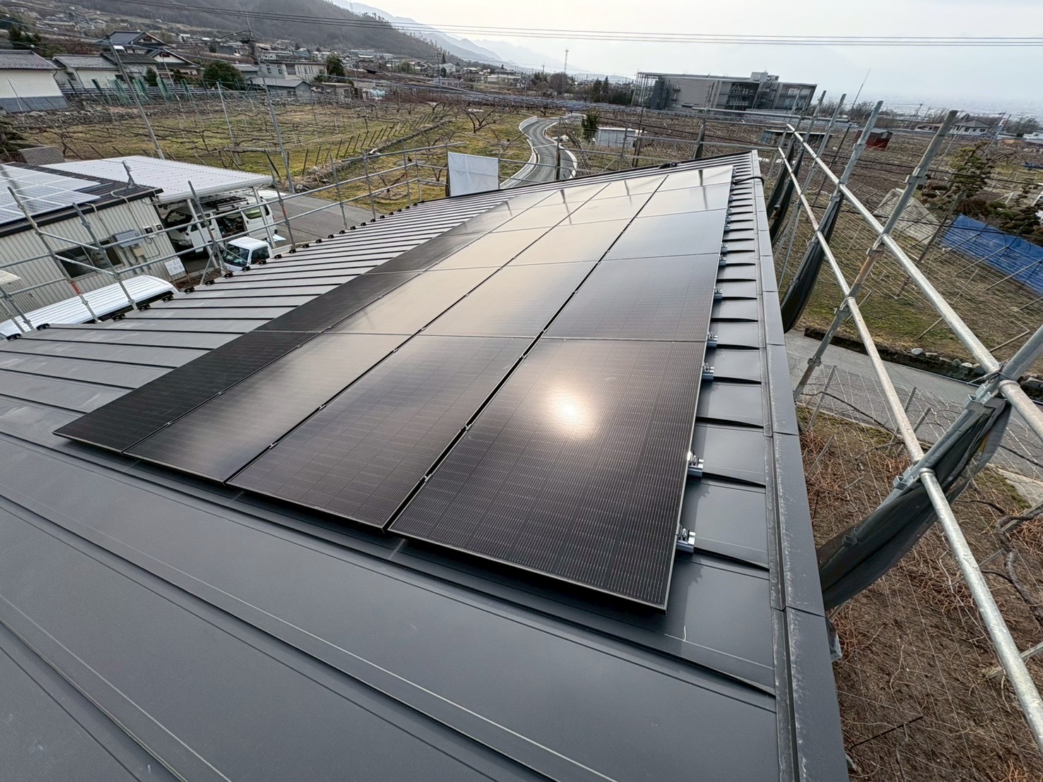笛吹市S様邸にて、太陽光発電システムおよび蓄電池の設置工事を行いました。