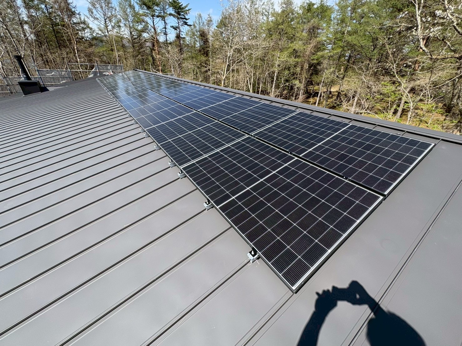 今回はガルバリウム鋼板(縦平葺)屋根の特性を活かし、 屋根に穴をあけない施工方法を採用しております。